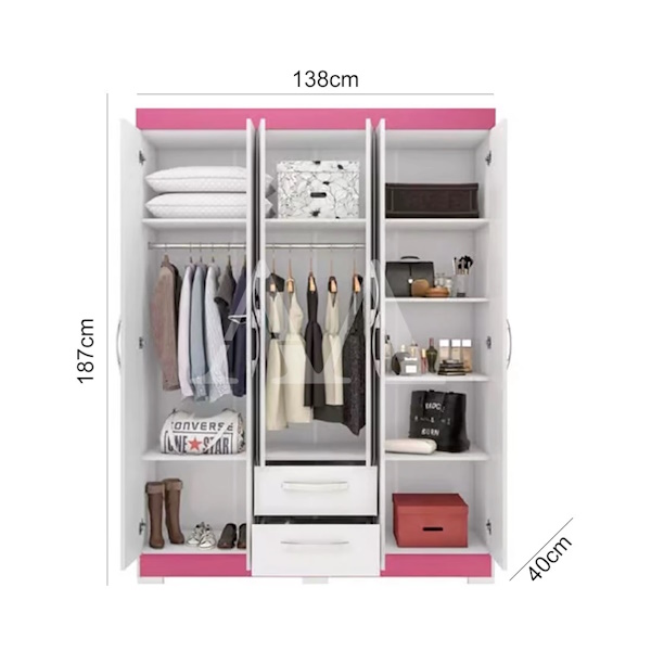 Características del Ropero 6 puertas 2C NT 6015 Blanco c/Rosa